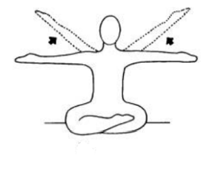 In posizione facile, con le braccia parallele al pavimento, i palmi delle mani rivolti verso l'alto cominciamo a fare su e giù con le braccia (quando andiamo su, arriviamo in alto fin sopra alla testa). Pratichiamo "Sitali Pranayama", inspirando quando le porto sù sù, ed espirando quando scendono giù.